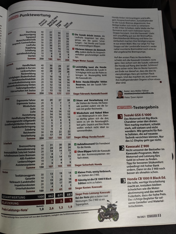 Die F9R wiegt sogar 3 kg mehr wie die Z900 ( laut meine Unterlagen 217 zu 214 kg ) und das sind meiner Meinung nach die besten Fahrwerke in der Mittelklasse.JürgenBY hat geschrieben:@chris