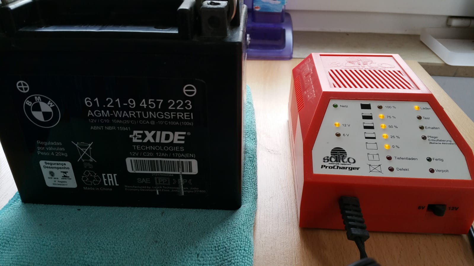 Ich besitze noch ein altes Ladegerät von Luis -Saito Procharger aber es ist auch für AGM Batterie zulässig( F 900 R )und unten im Bild zusehen.