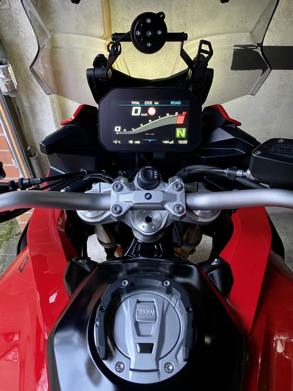 Tankrucksack passt auch, es werden oben die original BMW Schrauben verwendet (was mir wichtig ist) und es fällt beim Fahren optisch kaum auf.