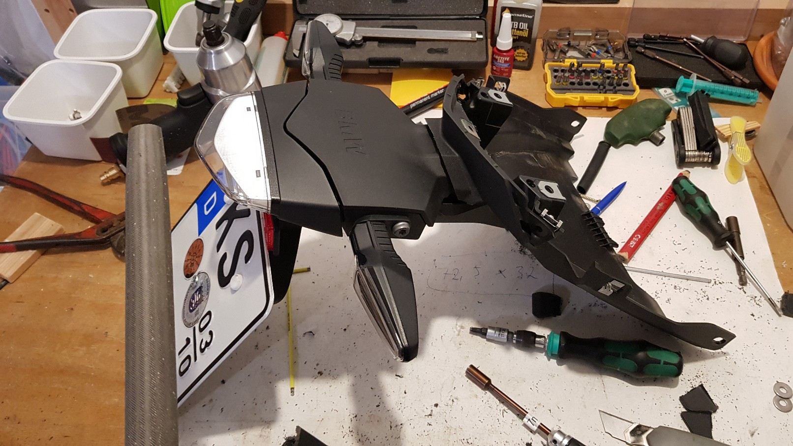 nachdem das was ich auf dem Markt gesehen hat mich nicht wirklich überzeugt hat, habe ich die Säge genommen und das Original Heck gekürzt.
