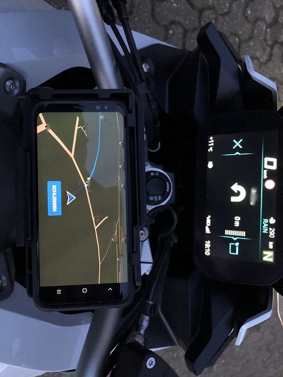 wie vermutlich 99,9% aller anderen BMW Fahrer will ich *nicht* das Original-BMW-Navi kaufen, sondern mein iPhone zur Navigation nutzen. Damit ist dieses monströse Cradle überflüssig. Hatte nun zunächst diese Adapter im Blick, die man in das BMW Cradle stecken kann (gleiche Maße wie das BMW Navi) und in den Adapter dann das Telefon. ZB https://www.ebay.de/itm/Motorrad-Halterung-Smart-Phone-GPS-Handy-Halter-fur-BMW-F750GS-F850GS-R1250GS/174222308416?hash=item2890757440:g:nH0AAOSwQmheb77V. Nachteil: Navi bleibt immer noch am Lenker und somit außerhalb des natürlichen Sichtfelds. Außerdem bin ich nicht sicher, ob ein iPhone inklusive Hülle in den Adapter passt.