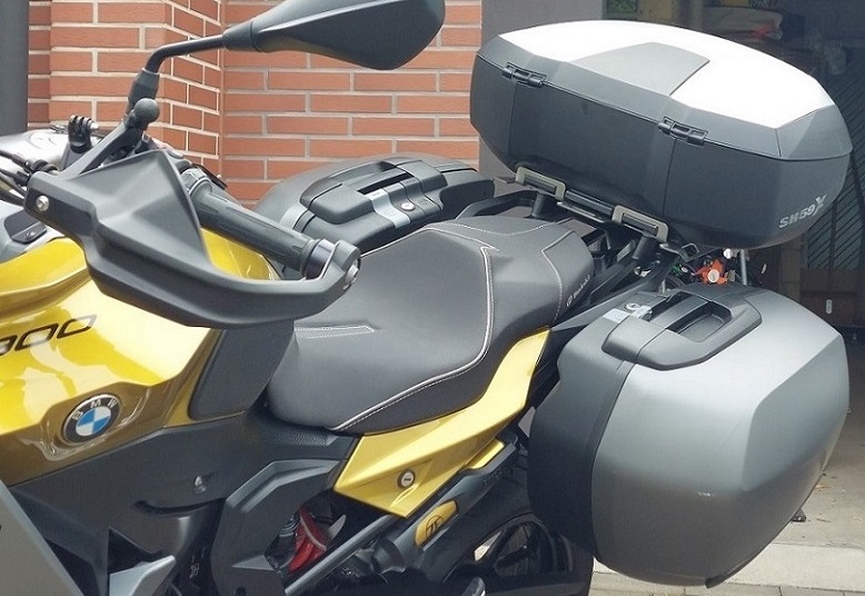 Aber SHAD bietet keine passende Adapterplatte für die BMW-Gepäckbrücke an. Mit der Klammertechnik klappt es nicht und der SHAD 'Topmaster' für die F900XR lässt sich nicht mit den BMW-Seitenkoffern kombinieren, da müsste ich auch die Seitenkoffer von Shad nehmen.