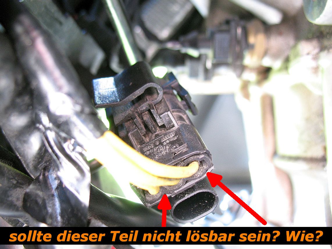Trotz Drückens der beiden Nasen / Federn konnte ich die beiden Steckerteile nicht einfach lösen. Außerdem dollte doch eigentlich die Eingangsseite vom Stator her herauslösbar sein, und nicht (nur) die gegenüberliegende Seite mit dem Anschluß vom Regler her, oder?