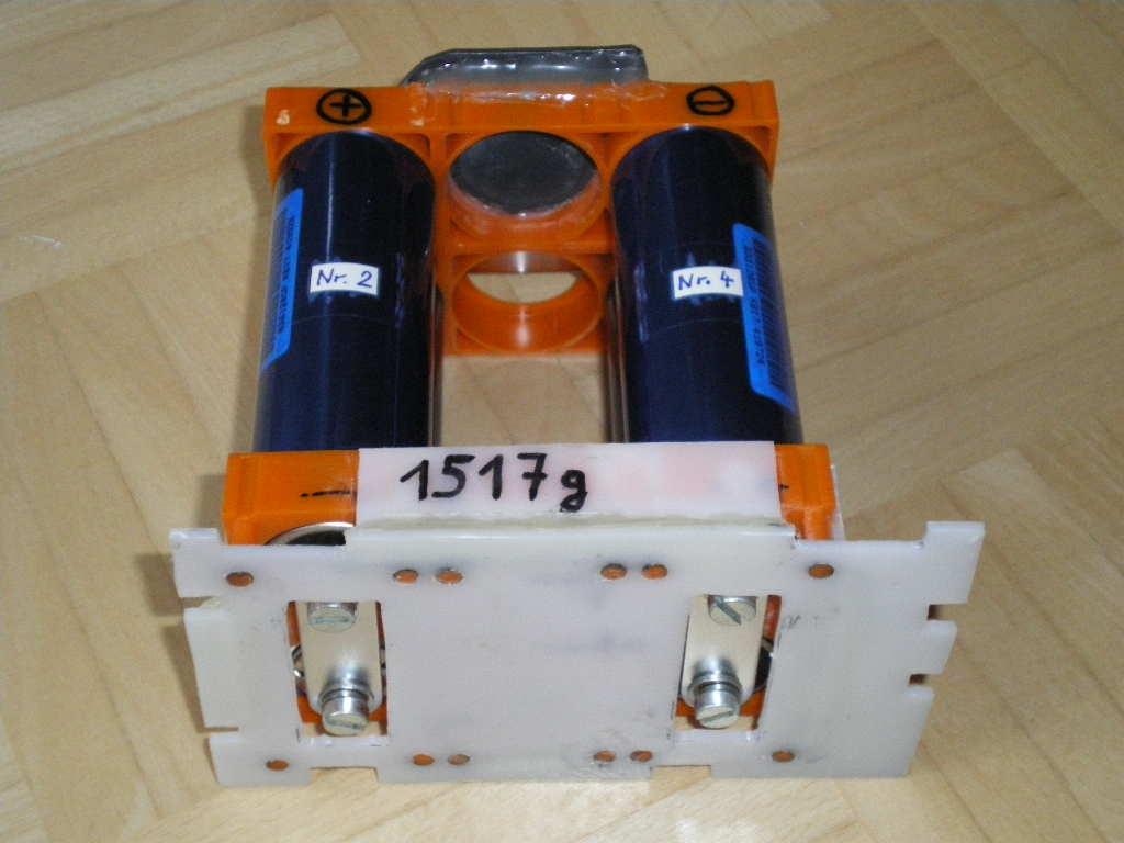 Also MEIN kompletter Akkusatz (siehe Bild) wiegt mitsamt der Plastikgehäusekonstruktion 1517g.