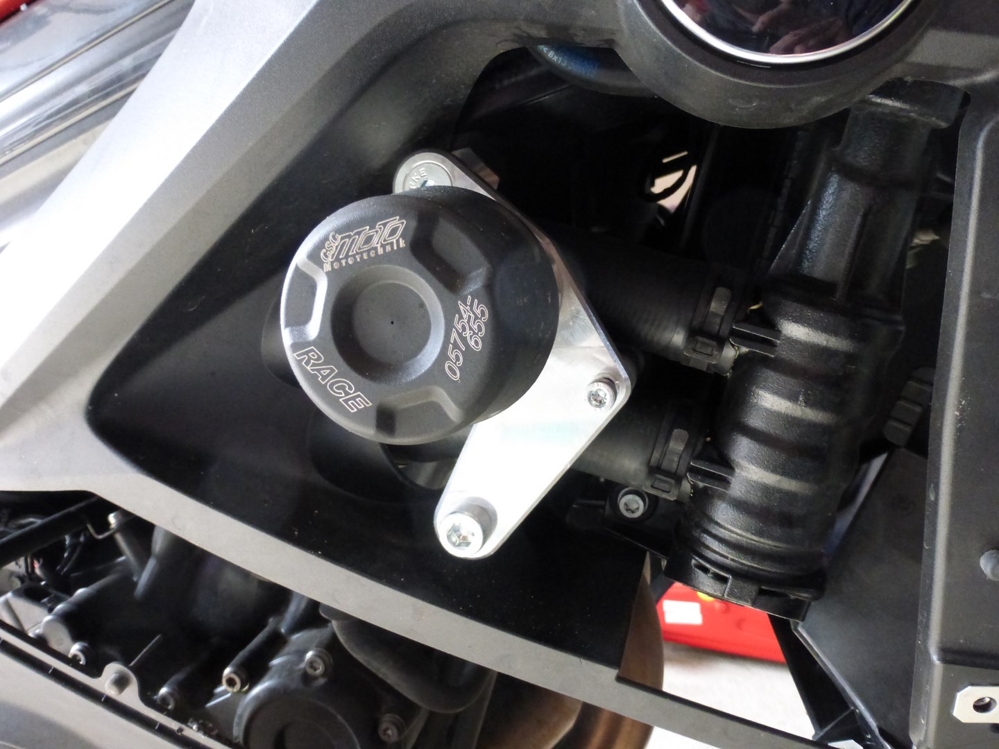 - Verkleidungsunterteil rechts ausbauen !!! wenn Ihr einen Sturzpad verbaut habt muss dieses auch Demontiert werden