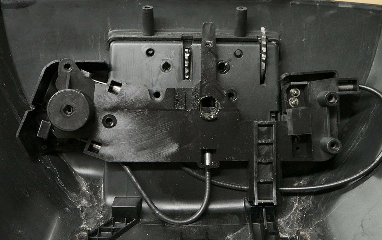 ganz links in der Nut, ist von der Feder verdeckt ein kleines Loch , da rein , dann gehts , so jetzt alles wieder zusammenschrauben