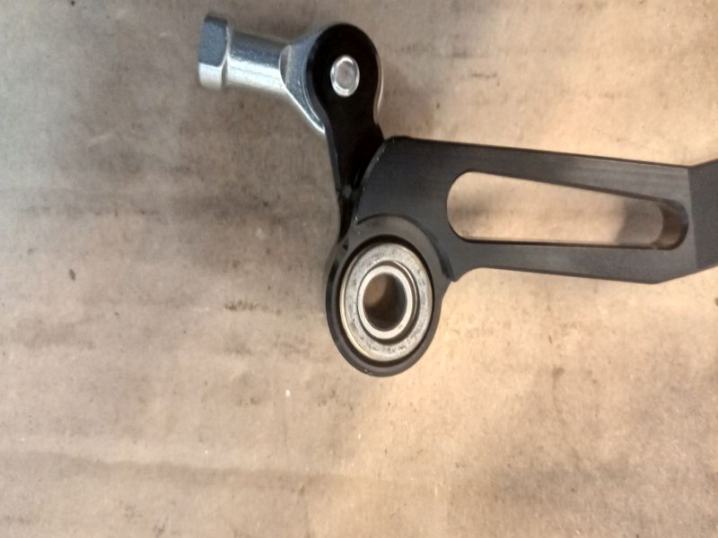 https://mtp-racing.de/CNC-gefraester-Al ... l-MTP10242. Dachte, der könnte passen, sieht gut aus und ist nicht so teuer wie der von SW Motech. Die Buchse passte, von der anderen Seite habe ich eine etwas dickere Unterlegscheibe genommen, damit habe ich so gut wie kein horizontales Spiel mehr. Nur die Gewindestange war viel zu kurz. Also passende Gewindestange (M5?) besorgt beim örtlichen Schrauber(Danke Peter!). Das erste Mal zu kurz abgeschnitten, Schalthebel stand zu tief. Also beim anpassen langsam vortasten. Ich habe jetzt so ca. 8-9 cm. Schraubensicherung nicht vergessen beim Anbau und Gefühlvoll anziehen, so dass der Hebel nicht klemmt.