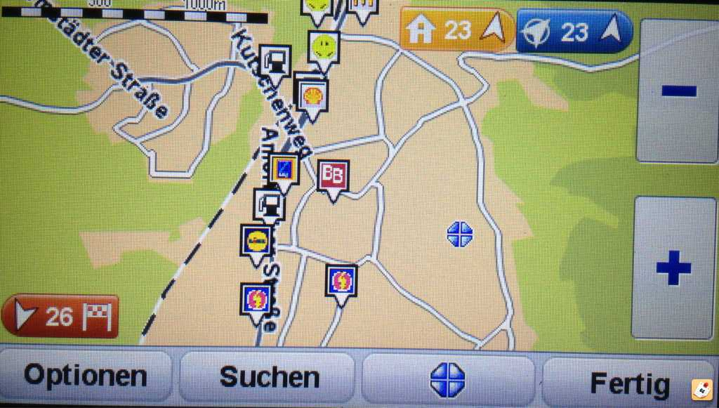 Möchte man vor POis gewarnt werden (Tankstellen, Fotos) kann man den Warner im TT auf 250m aktivieren. Weniger ist echt zu knapp, da TT die Abbiegungen etc in angeblichen 50metern Ferne anzeigt, die schon fast neben einem liegt :roll: )