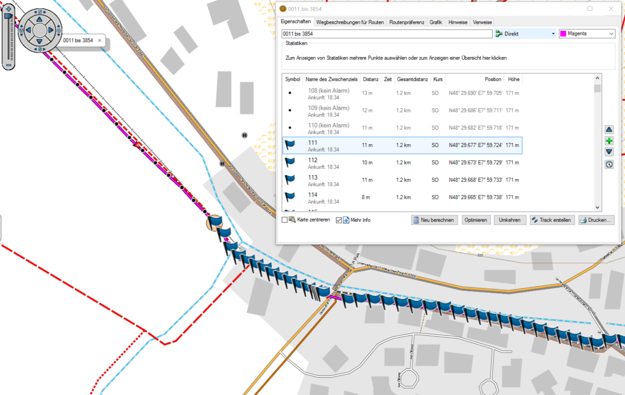 Außerdem fanden wir nur "Zwischenziele". Aber keine Wegpunkte.
