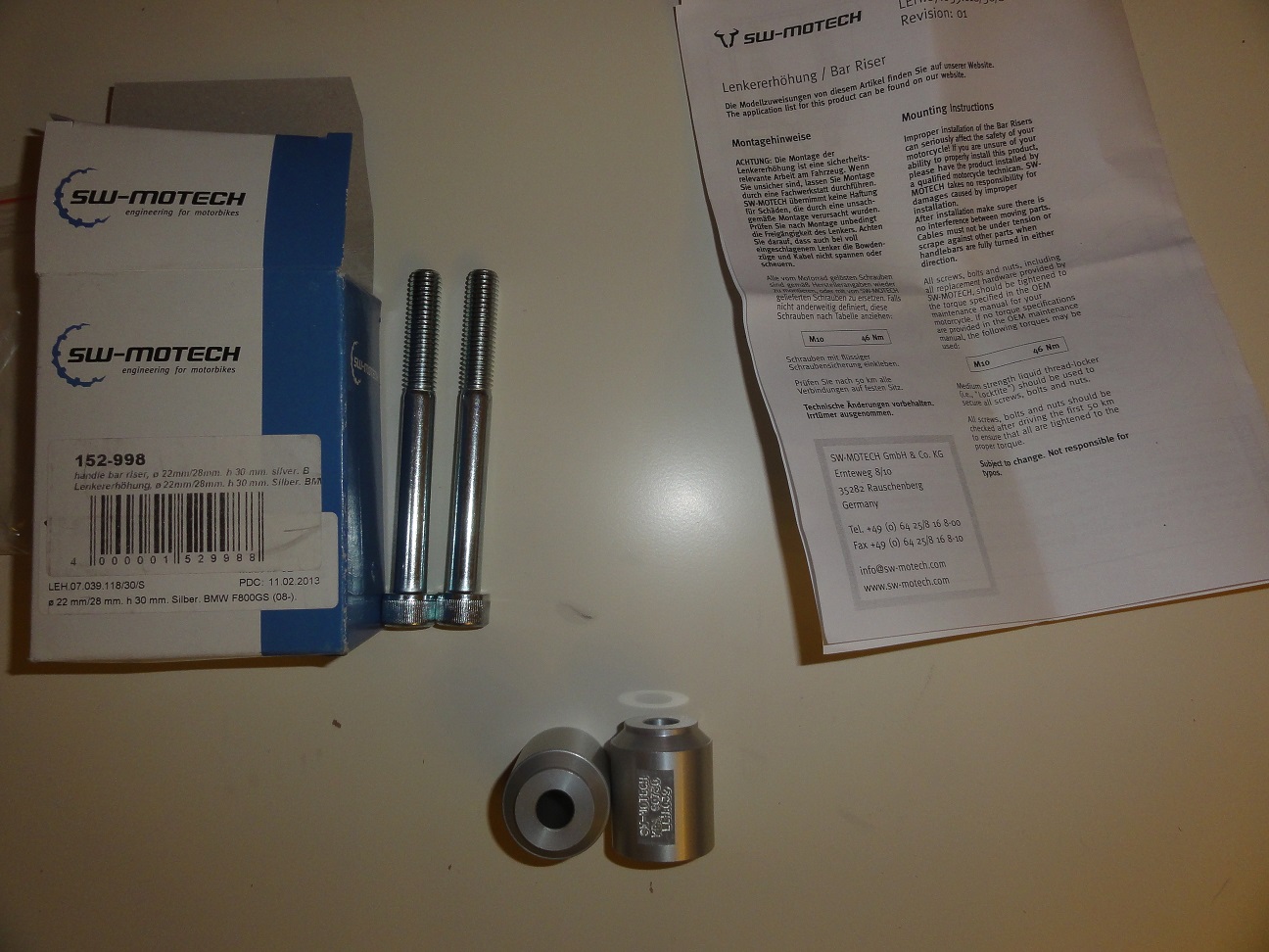 Hallo leobar, habe mir von sw-motech auch die Lenkererhöhung 20 mm besorgt, wie hast du diese denn verbaut, es sind doch Innensechskantschrauben M10x90 dabei, die passen doch nicht. Bin gespannt, wie du das gemacht hast!