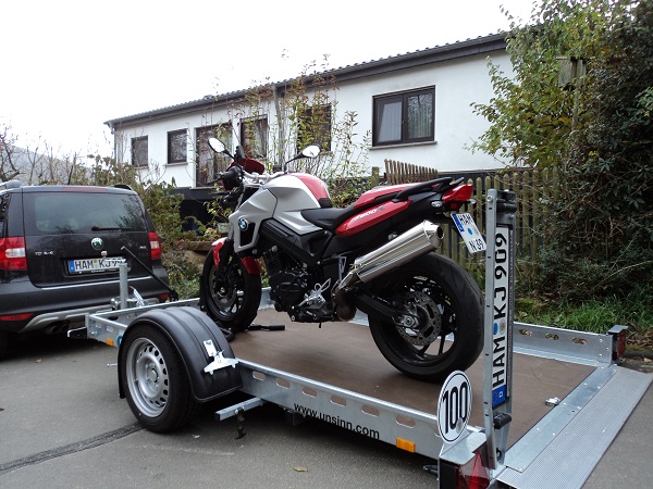 Am Sonntag auf der Rückfahrt vom Schwarzwald bei starkem Dauerregen war ich mal wieder froh, dass das Motorrad auf dem Anhänger verzurrt war.