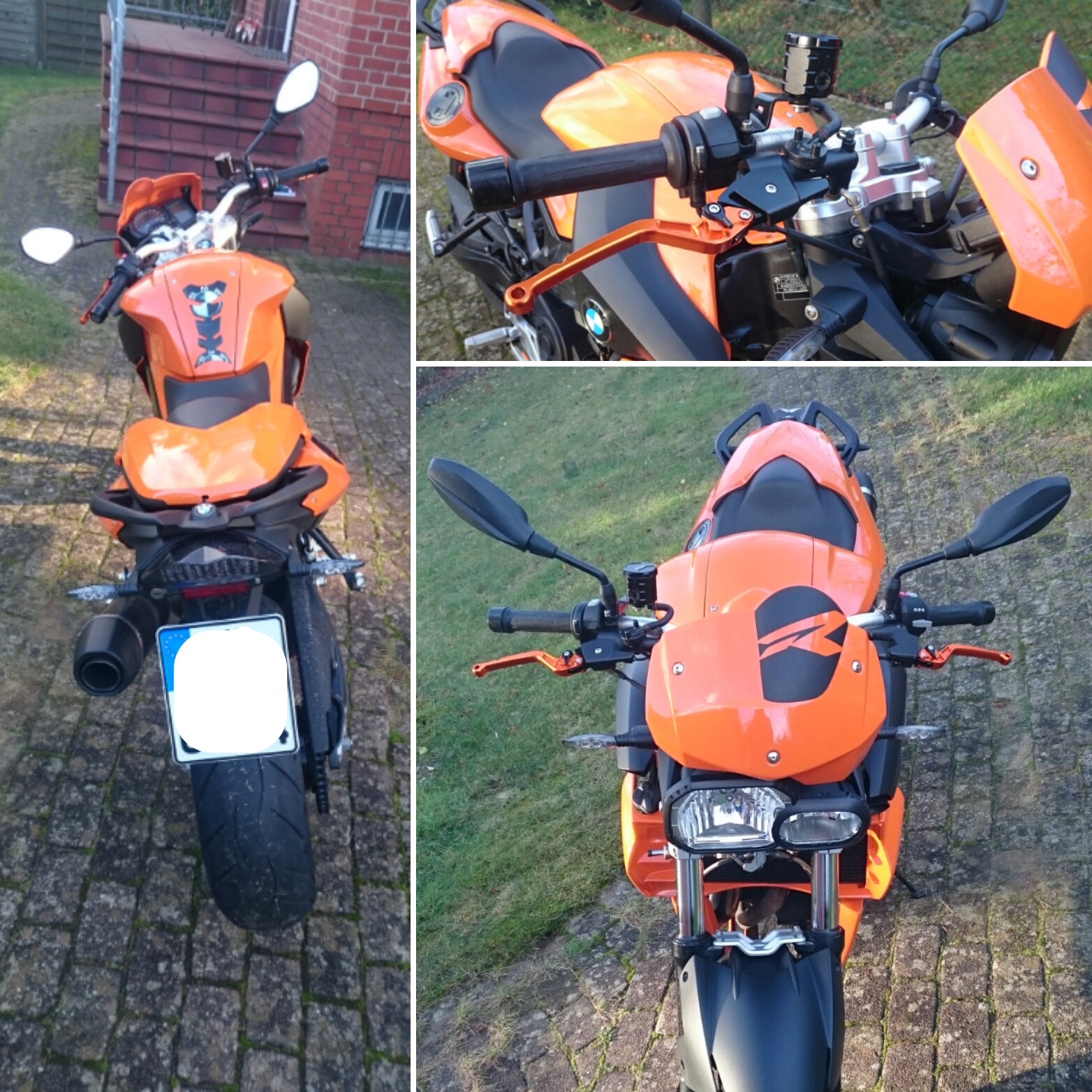 Meine R: 06/2010, Feuerorange, Felgenband Orange, ABS, LED Blinker, Boardcomputer, schwarzes LED-Rücklicht, BOS GTS ESD, AC Schnitzer Lenker, K&N Luftfiltereinsatz, GSG Sturzpads, Kühler- und Motorblende orig., Touratech Motorschutzbügel,(Carbon-Luftfilterkastenabdeckung, Tankumrandung, Boardcomputerumrandung) SoEasyRider V4 Navi Halterung;