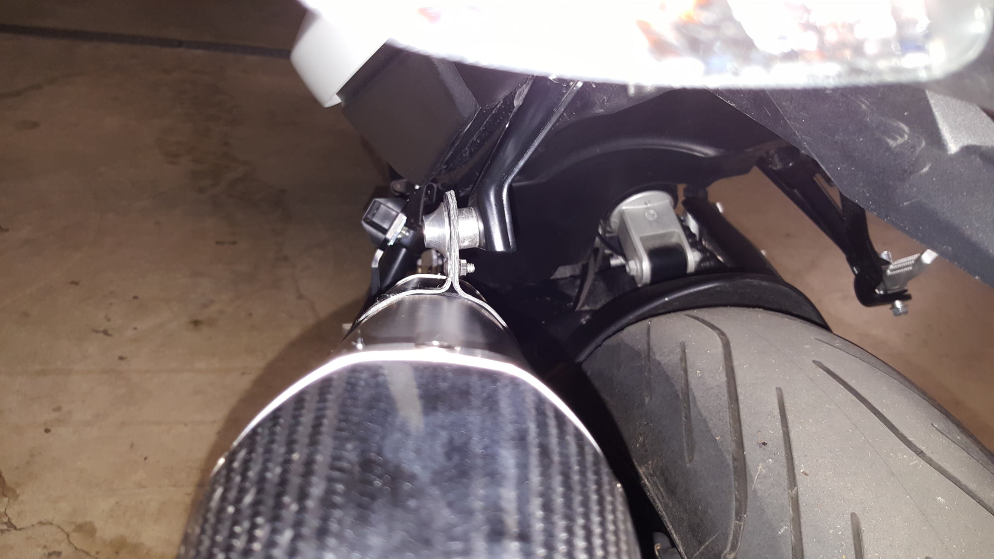 Meine anderen Zubehör Auspuffe hatten immer Metall Schellen mit Gummi drüber. Oder es war eine Öse angeschweißt. Aber der Carbon Schelle vertraue ich irgendwie nicht. Viel Falsch bei der Montage kann man ja kaum machen.