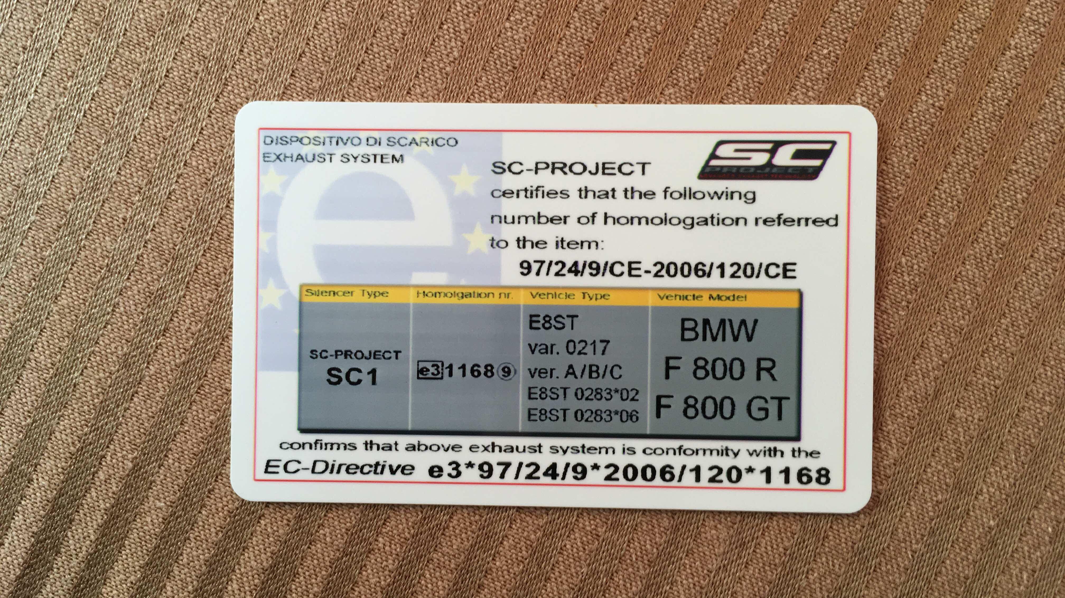 Wenn du eine 2017er Euro 4 F800R hast ,schau mal in deine Papiere , da steht als Typ 4R80 , also ist dein SC an deiner F8R illegal , und das ist für die Polizei anhand der Karte und deiner Papiere direkt nachweisbar. :D (Auch ohne Papiere an der E-Nummer)