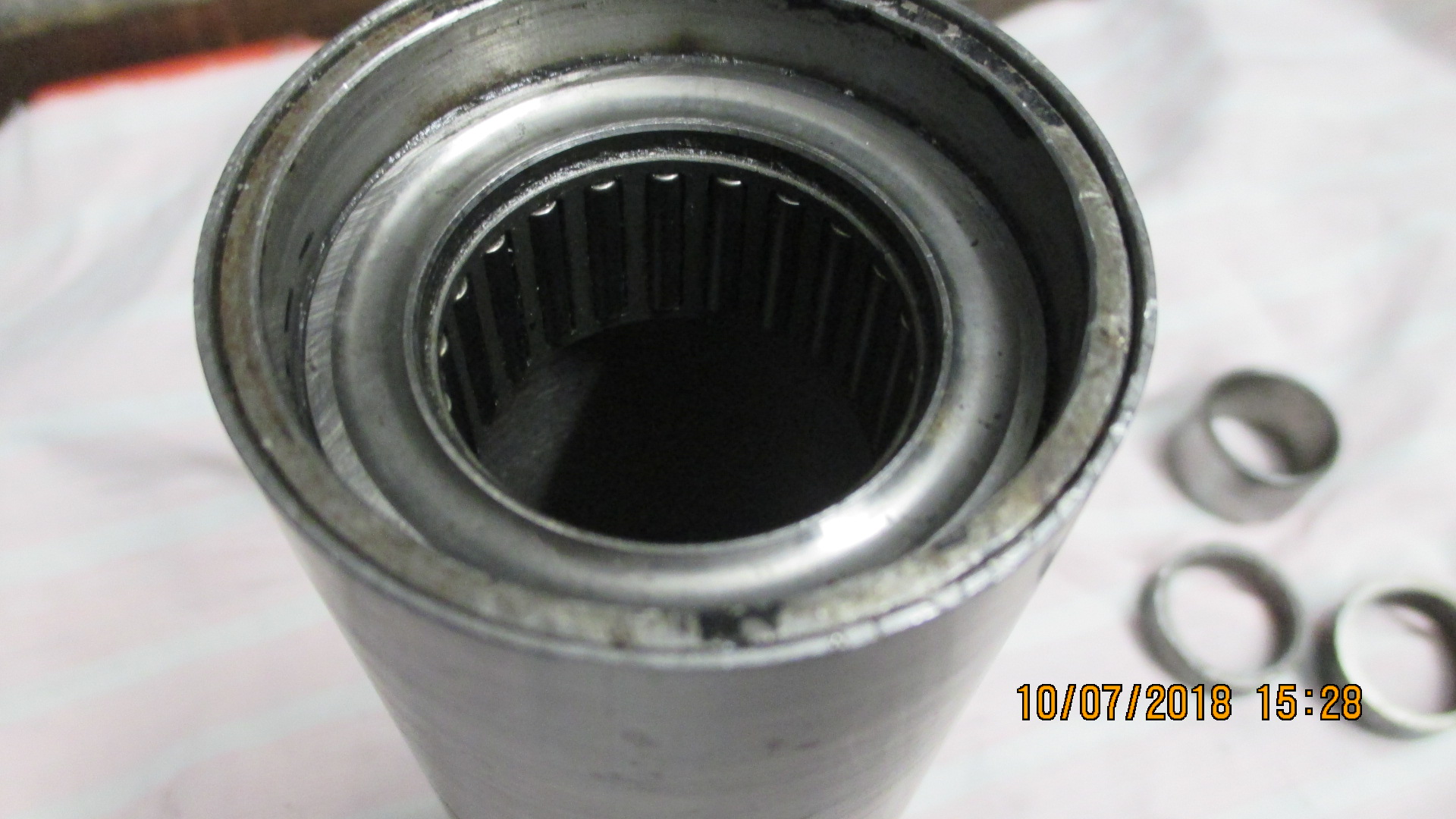 man kann die Lagerschalen problemlos wechselseitig austreiben, da diese nach innen uber den Sitz hinausragen. Benötigt wird halt ein entsprechend langer Dorn oder wie ich es gemacht habe, entsprechend langes Rundmaterial.