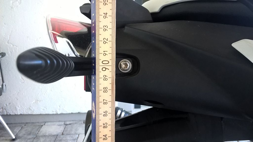 => 90,25cm Mitte Blinker bis Boden, den Meterstab im Winkel des Bikes angelehnt