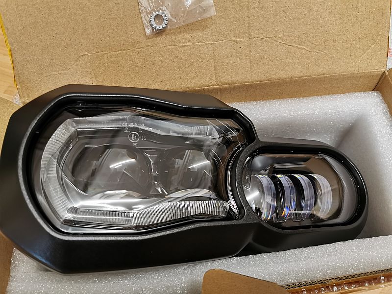 Der Scheinwerfer für GS und R als LED Nachrüstteil ist top. Hab mir diesen bei meinem Schrauber nach der Inspektion gekauft und in 2 min mit Bordwerkzeug (Torx) angebaut. Lichtausbeute deutlich besser als der Halogenscheinwerfer, zumal ja Einige die "Mehr-Watt" Brenner eingestetzt hatten und den Reflektor verschmockten, um eben mehr Lichtausbeute zu haben. Das kann der China LED Scheinwerfer. Sieht auch noch toll aus und, für mich mehr als wichtig, ich werde in der Großstadt/Hauptstadt besser im Verkehr gesehen.