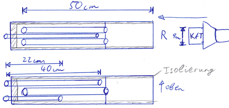 Die Rohre, Kammern und Maße sind in der Skizze.