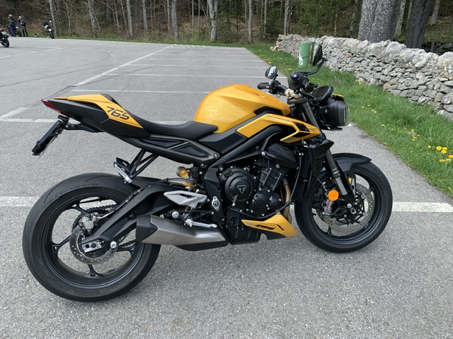 Die Überraschung: die neue Street Triple 765 RS. Klar, einen ganzen Tick sportlicher als die F900R, aber sie lässt sich auch sehr entspannt fahren. Ein geiles Fahrwerk, ein Motor der schön am Gas hängt und durchzieht, einfach Klasse. Erinnert mich an alte Kawa-Zeiten (ZXR750, ZX6R), nur viel, viel besser und raffinierter :) Natürlich nicht so alltagstauglich wie die F900R, aber wer nach etwas sportlicherem sucht ohne gleich in die “Flensburg inklusive”-Klasse ;) aufsteigen zu wollen könnte hier sehr glücklich werden. Gerade bei diesem Preis.