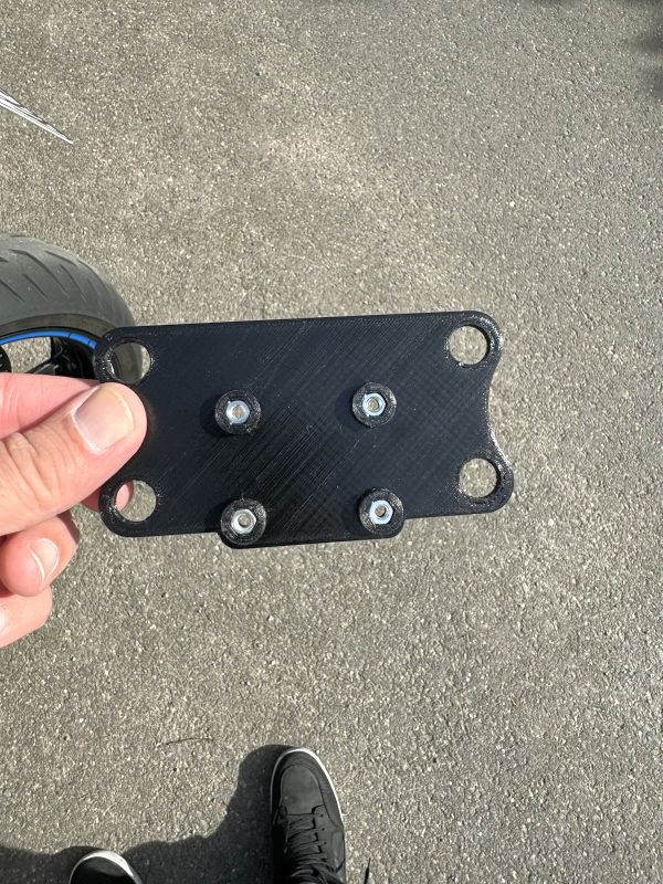 3: 4x M4 Muttern (Neue oder die von der Halterung) auf der Unterseite der neuen Platte einmal einschrauben und festziehen, sind dann fixiert.