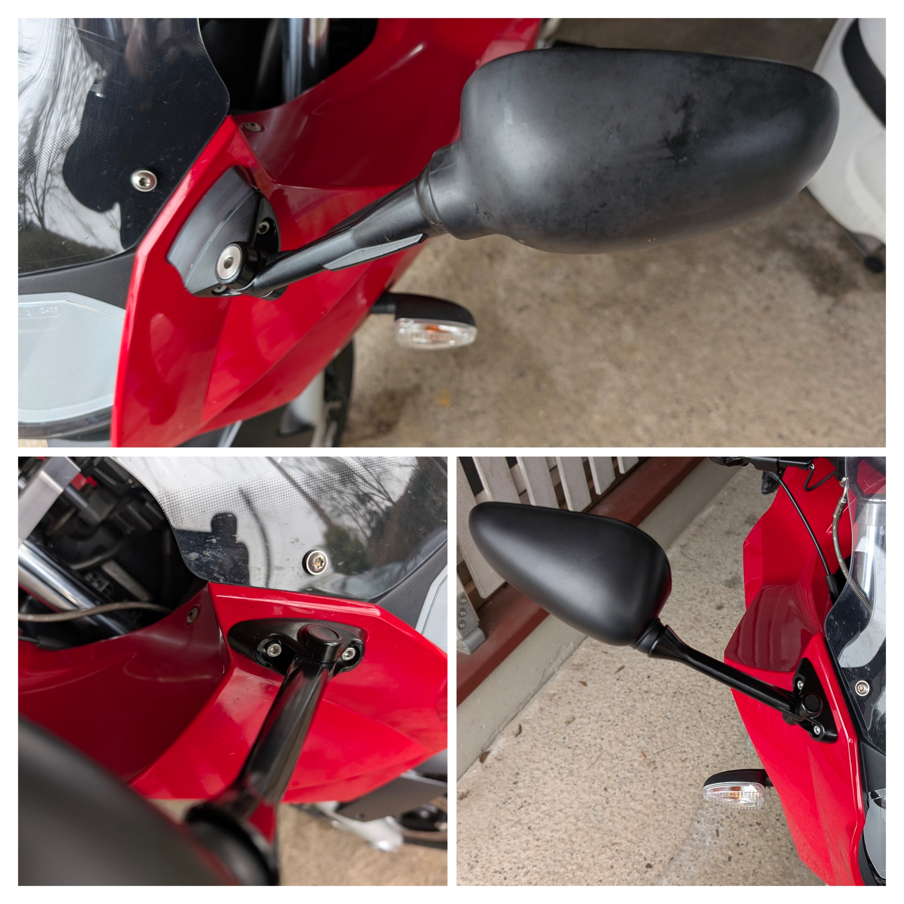 Ich habe eine S auf Lenkerspiegel umgerüstet, die andere hat einen Gazzini-Bausatz bekommen, da musste ich aber die Verkleidungsbefestigung modifizieren. Jetzt sehe ich mehr als mit den Originalen plus Verbreiterung aber so ganz glücklich bin ich damit auch noch nicht.